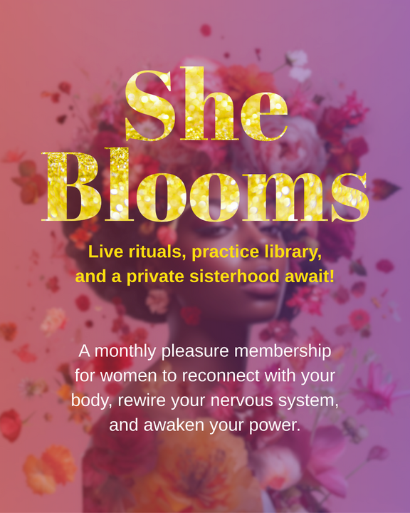 She Blooms is a monthly membership for women ready to awaken their erotic energy, soften into their bodies, and bloom in pleasure, power, and purpose.